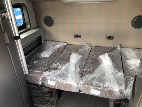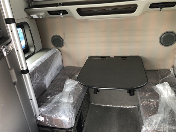Globetrotter VNL860, fully loaded with driver comfort and convenience features. Package includes upgraded exterior and interior trim. Lower bunk converts into dinette with seating and table, full size upper bunk folds away with easy access ladder. Tons of extras include fridge, inverter and bunk heater. Best equipped trucks in the country at the best price, call today.