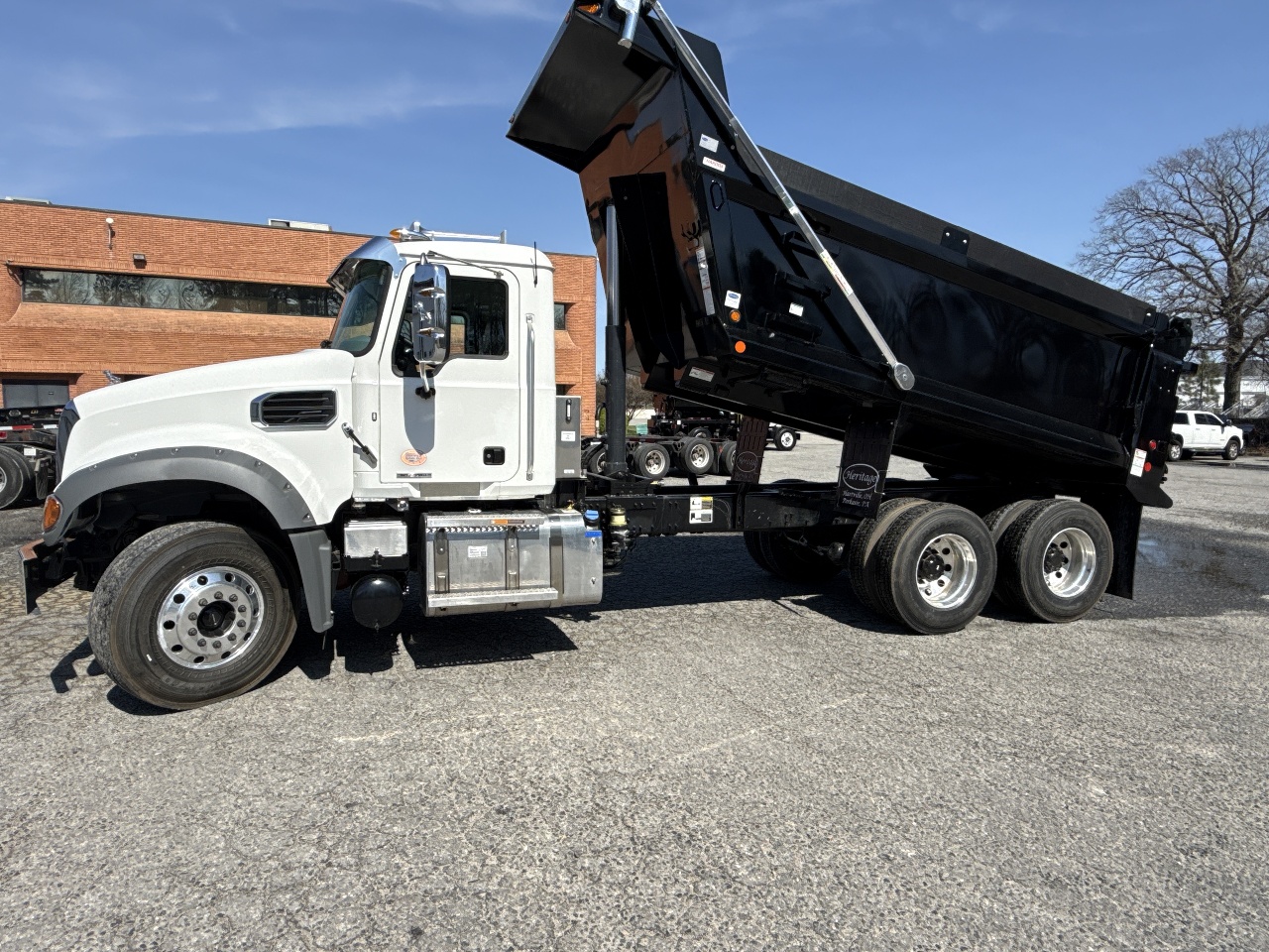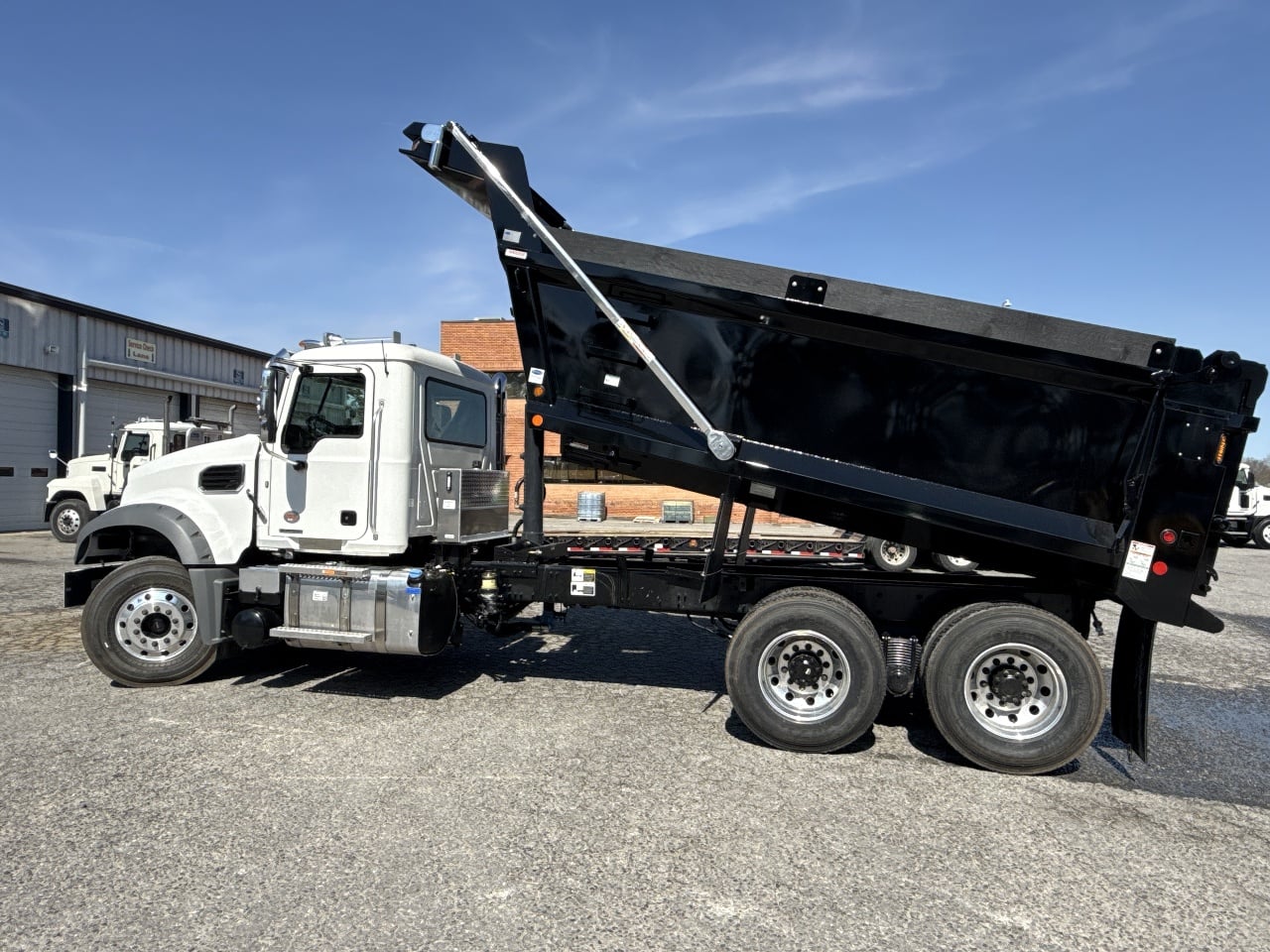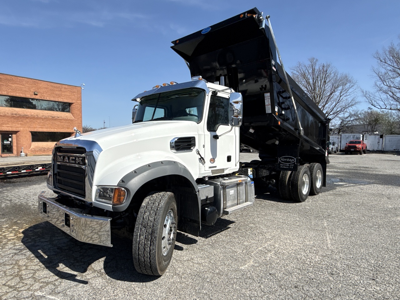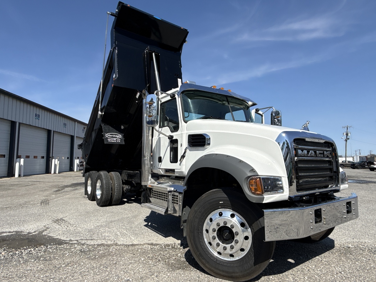 25-ton pintle hitch, Factory air brake package, Class 8 dump truck, Vocational chassis, Mack Granite specs.