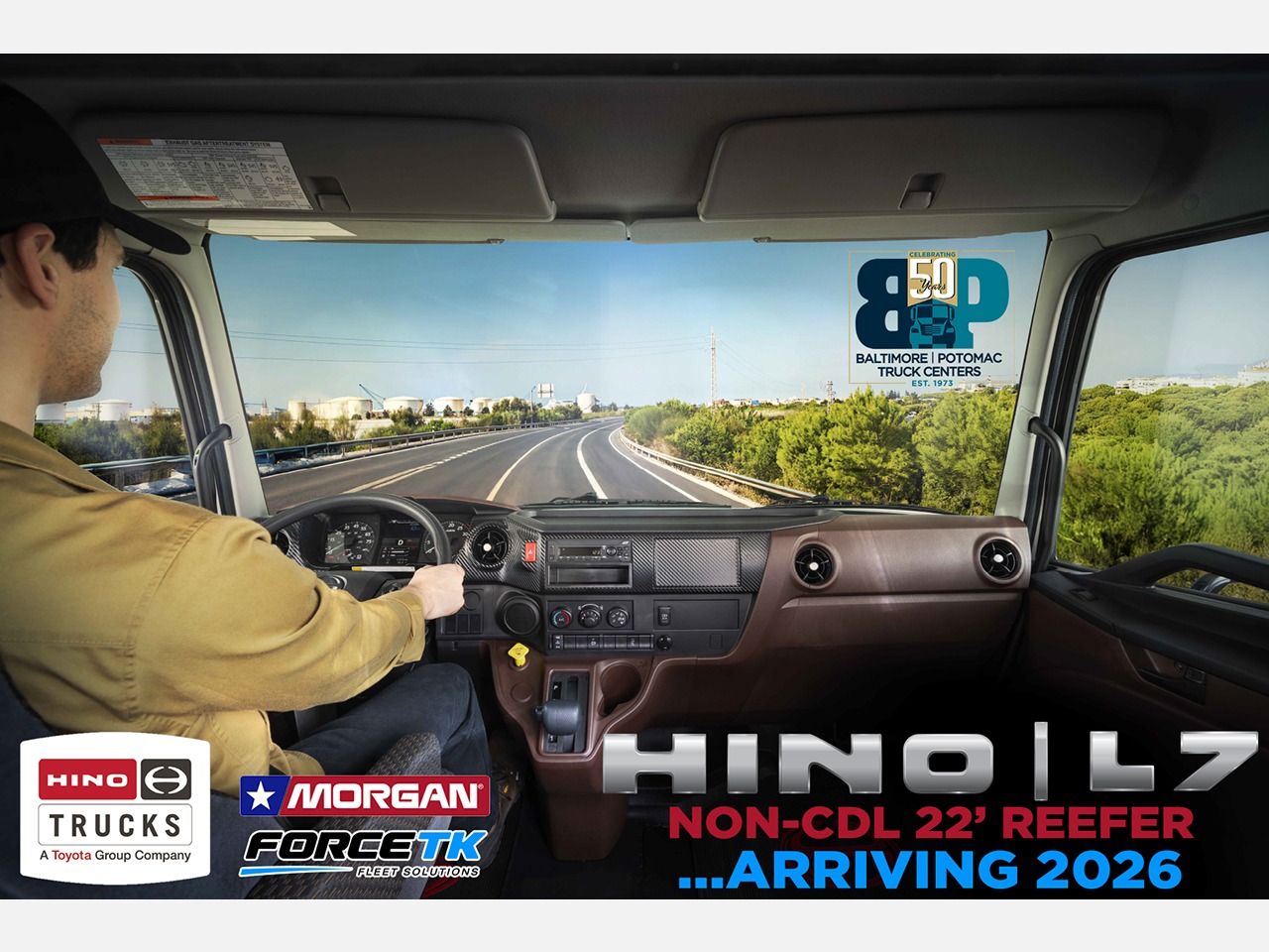 The 2026 Hino L7 Non-CDL Reefer is purpose-built for refrigerated delivery, equipped with a 22-foot Morgan body and Thermo King T-890 refrigeration unit. With a GVWR derated to 25,950 lb, it can be operated without a CDL while maintaining the strength of a 33,000-lb chassis foundation.:contentReference[oaicite:0]{index=0}:contentReference[oaicite:1]{index=1}